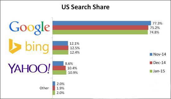 2015年截至3月谷歌在美国的搜索市场份额