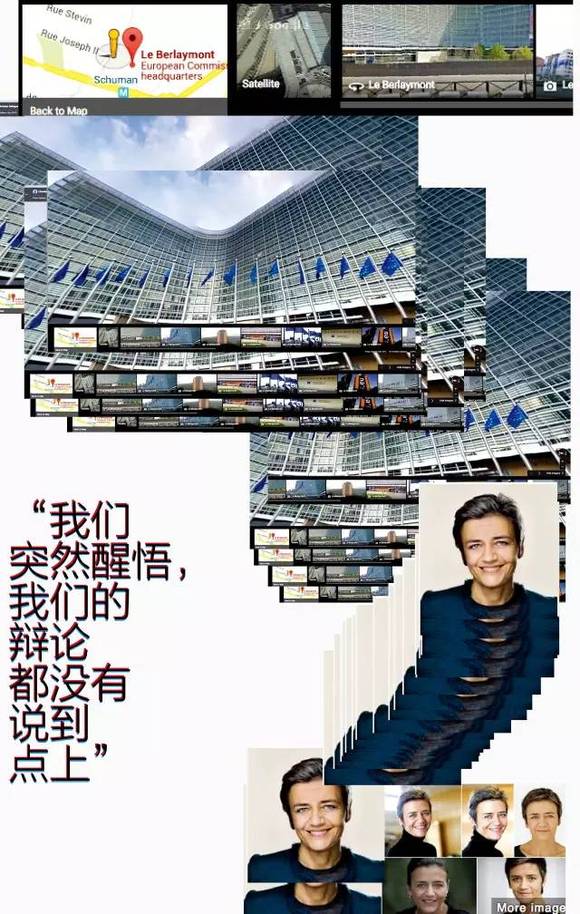 维斯塔格说,她上任后首先处理的就包括谷歌的案宗。“这么说吧,它就在我的办公桌上。”她在欧盟总部大厦10层的办公室里接受采访时说。办公室中央是她的办公桌,从背后整面墙的窗户可以看到布鲁塞尔的天际线。