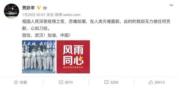 第二天,贾跃亭的微博再次更新,但不是对这一消息的回应。作为一个土生土长的中国人,即使身在海外也心系国内,他心如刀绞地为武汉祈福,只是不清楚是哪把刀绞在了他的心上。