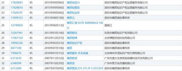 看到如上所示表格,很多人就会问,难道《精英律师》的出品方没有注册"精英律师"商标?非也,非也。