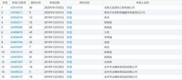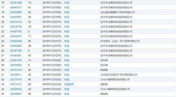 根据上述列表,申请"权璟"商标的申请人中并不包含《精英律师》的出品方新丽电视文化投资有限公司和浙江贤君影视文化有限公司,也没有关联公司狂欢者电影制作有限公司。