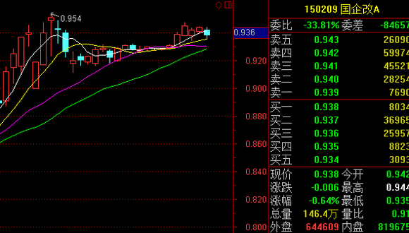 下图是国企改B(150210)8月15日以来的K线图,从图中可以看出,这段时间, B类份额先是连续跌停,向下折算后又是涨跌飘忽不定,难以把握。在当前的小反弹行情下,B类份额的表现已经略有改善,但投资B类份额时仍然要注意风险。