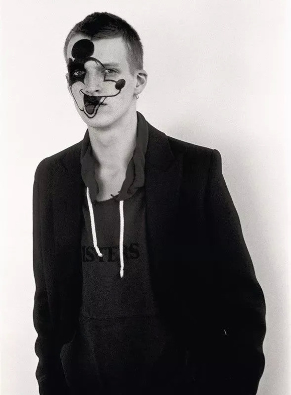 模特身穿Raf Simons的衣服,以米奇头作为绘画元素,为V Magazine拍摄了这张封面大片。这张大片为Raf未来的知名度奠定了非常坚实的基础,同样的,依旧是Olivier等一票好友为其鼎力协助。