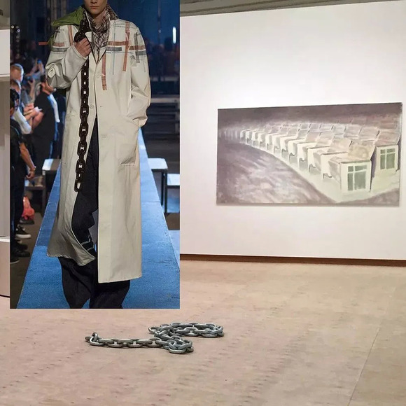 在自己的品牌里,他可以想怎么玩就怎么玩,比如把恐怖主义当做设计元素融入自己的设计里,举着火把,包得严严实实,让人们观看时能感受到强烈的恐慌、复杂的心理。