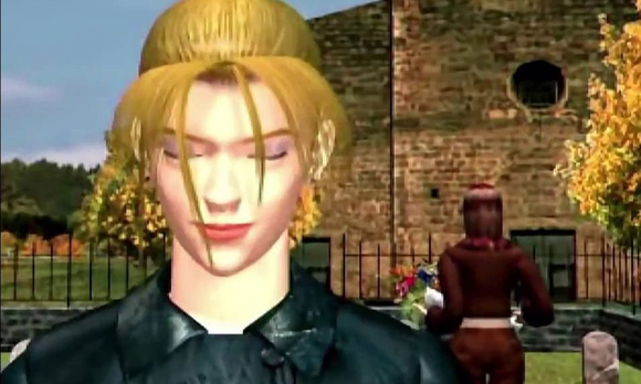 一头金发、扎着马尾的年轻姑娘站在她刚去世不久的父亲坟前。片刻的默哀后,她把手中的花放下,紧接着听到身后传来脚踩碎石的响动。她猛地转过身去,拔出枪,出现在眼前的是一名跟自己差不多年纪的褐发女郎。褐发女郎虚弱地向她笑笑,并保证自己不是过来找她打架的——她此行也是为了悼念逝者。她们经过彼此身边,两人之间剑拔弩张的气氛即使在1996年的低画质动画中也清晰可见,但她们决定暂且放下矛盾,至少在这一天和平共处。
