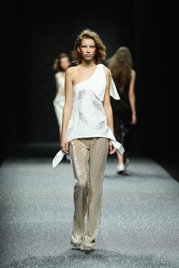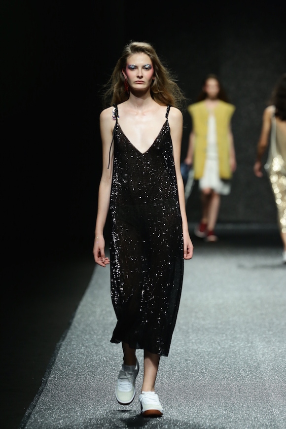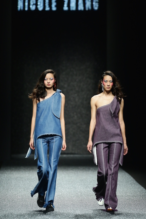 相较于往季设计,Nicole Zhang在2016春夏的设计中,使用了以往不常使用的金色、绿色、紫色等较为鲜亮的颜色。同时,她还利用了施华洛世奇水晶、牛仔布、薄纱、针织、飘带等设计元素,加上通过搭配运动鞋来完成整体造型,使得原本高冷剪裁的服装以一种运动、休闲、流畅、亮眼的视觉效果呈现,突破了以往该品牌冷酷的风格。