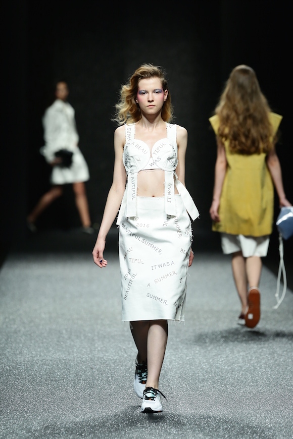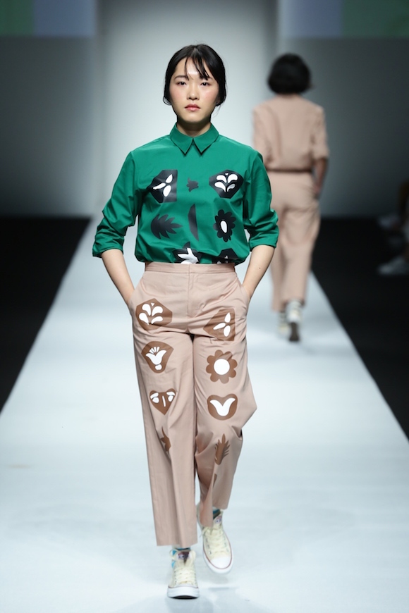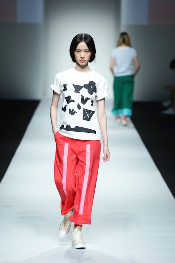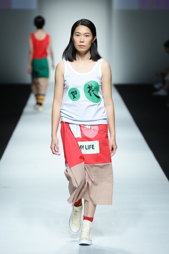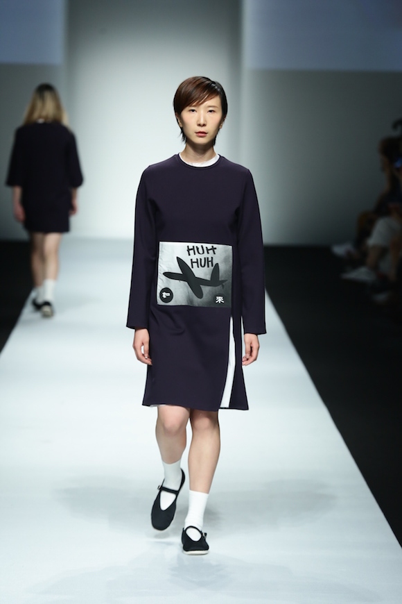 与往季一样,张达在本季发布会也使用了非专业模特进行走秀,这使得整场秀少了戏剧性,多了一份地气。从发布顺序看,展示的服装由素到艳,反映出了春到夏的过渡。张达以往的特色就在于东方元素的表现,而这一季也依旧保持了这一风格:布衣、布鞋、汉字、中国式漫画都是主要的表达元素。同时,张达也将涂鸦、运动元素放进了设计,希望以此反映当下的社会状况。