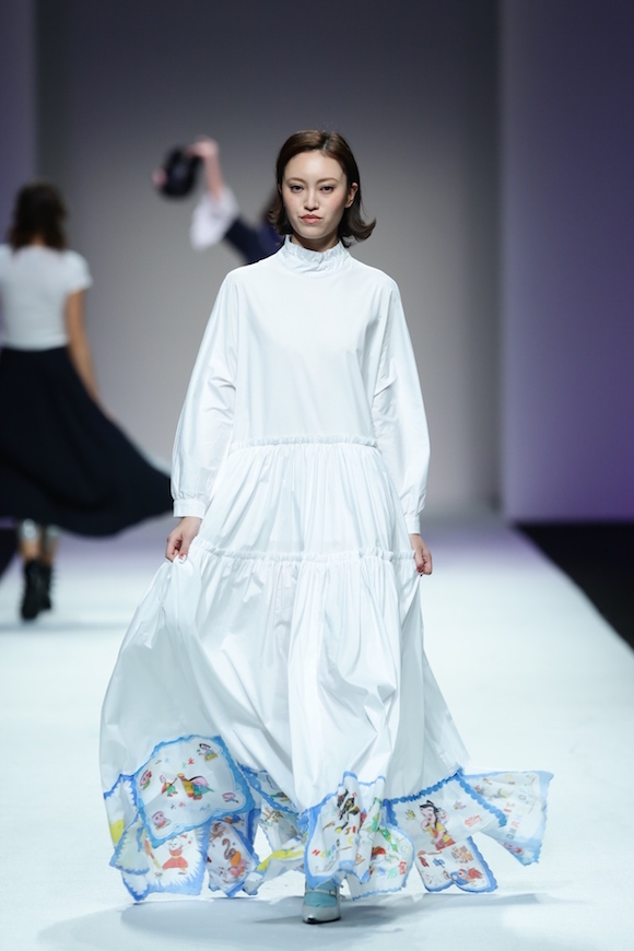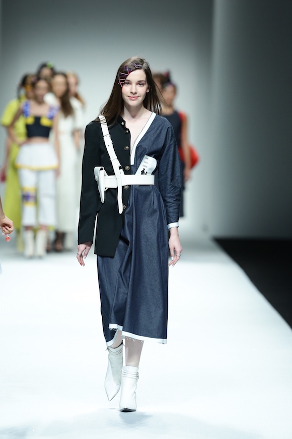 “整个系列就是想表现90年代的初三高一学生放学后的情境。她们在这个年纪开始想要模仿自己的偶像,有了自己喜欢的男生,开始形成自己的审美和穿着风格。”王天墨在秀后接受媒体群访时说。