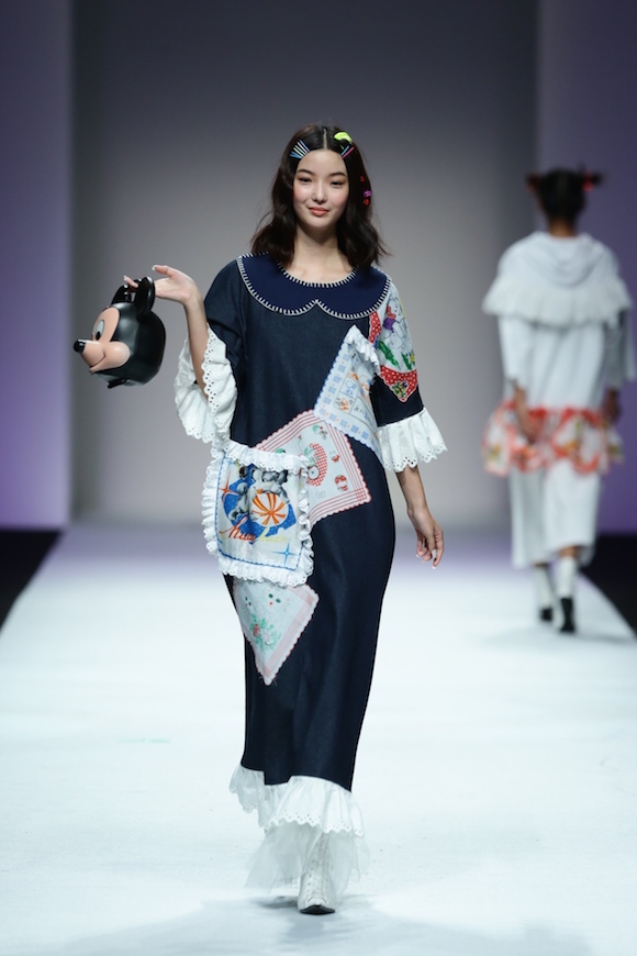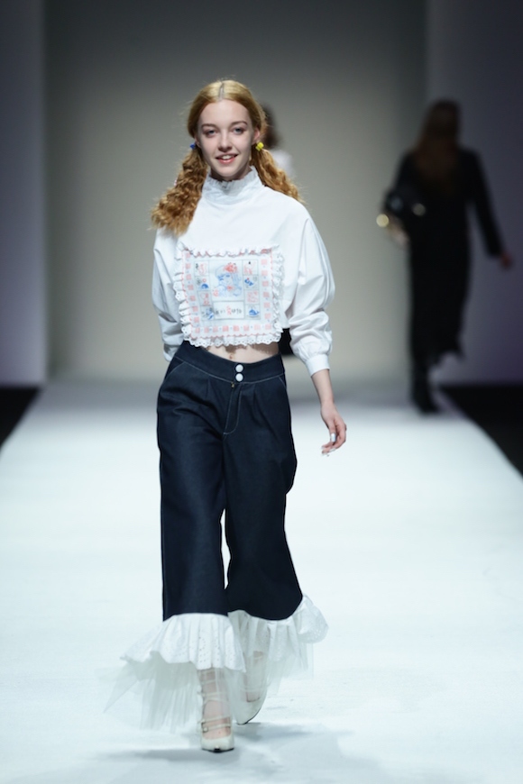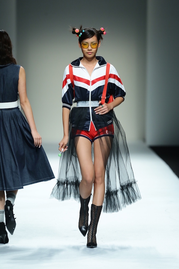 不过,王天墨并没有完全复制90年代的审美——在以中国式校服、复古儿童手帕、喇叭裤等90年代服装元素为主题的前提下,她也加入了反光条、薄纱、牛仔、运动风、廓形等当下流行的元素。