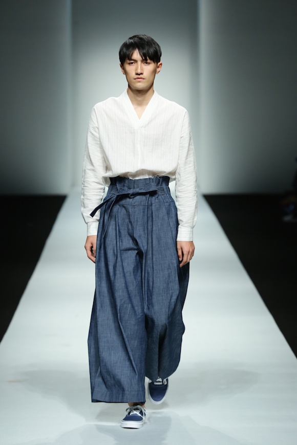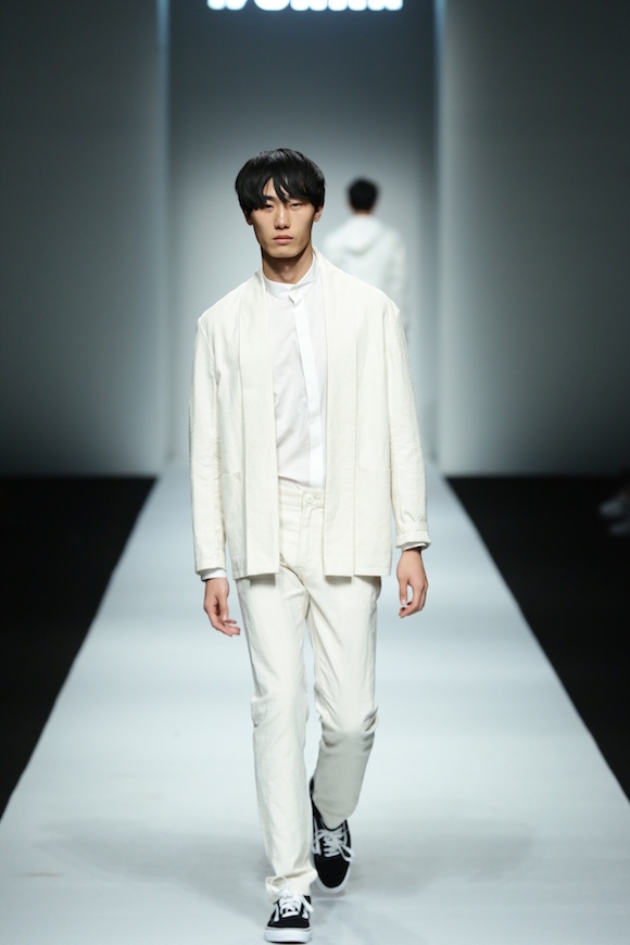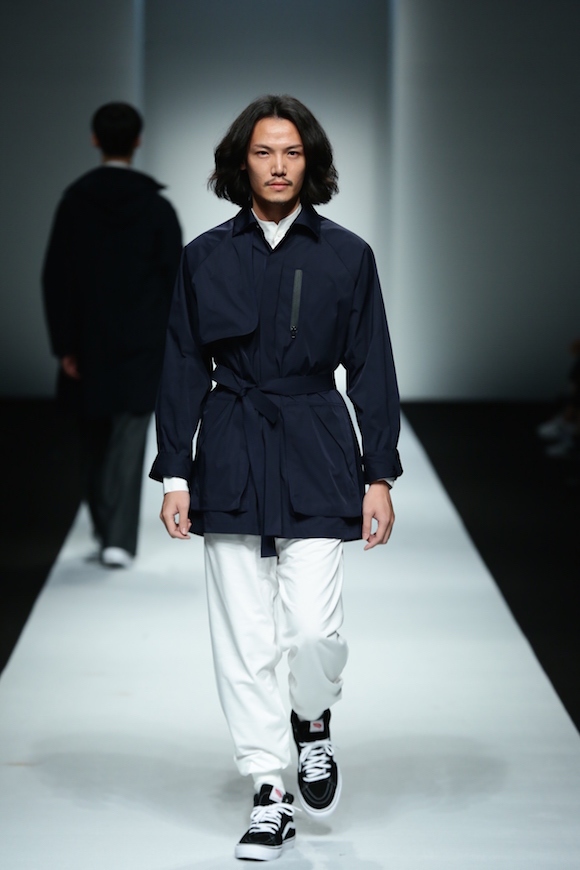 设计师周晓雯这一季的设计,从旅行时的切身感受中获取灵感,用廓形剪裁的外套、松弛的阔腿裤,不同系带方法的长风衣,有防盗口袋的防雨外套等设计,表现“唐宋风度、翩翩公子”这一主题。另外,在面料选择上,牛仔以及防水、透气的功能型面料也考虑到了春夏季穿着的实际需求。
