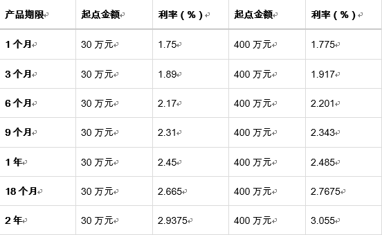 (2) 与同行大额存单比较,以最普遍的30万元起点为例,与招商银行相比,并不具备优势: