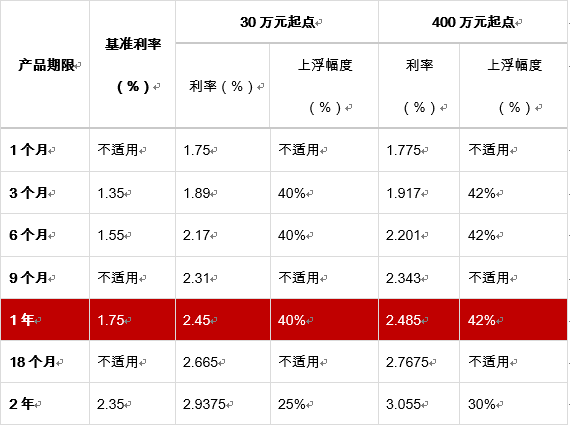 (1) 与银行存款基准利率比较。以典型的1年期利率为例,相比基准利率分别上浮40-42%。