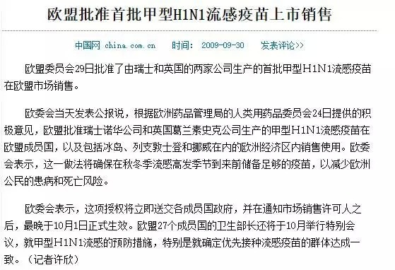 当年6月,《英国医学杂志》和欧洲议会同时发布报告,批评世卫组织对2009 H1N1大流行的处理失当。