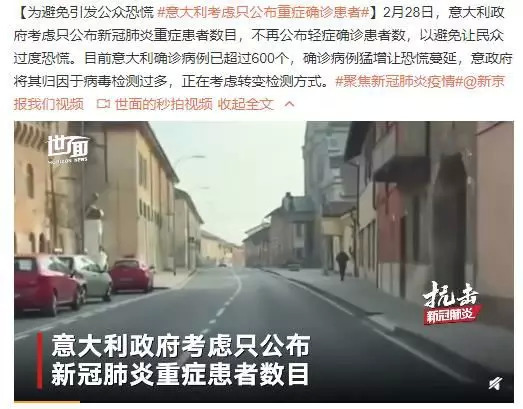 又有报道称,为避免引发公众恐慌,意大利考虑只公布重症确诊患者。