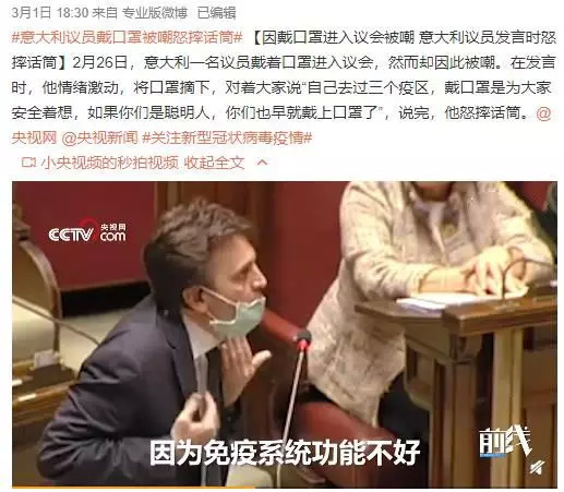 比如,意大利一名议员戴着口罩进入议会,却因此被嘲笑。