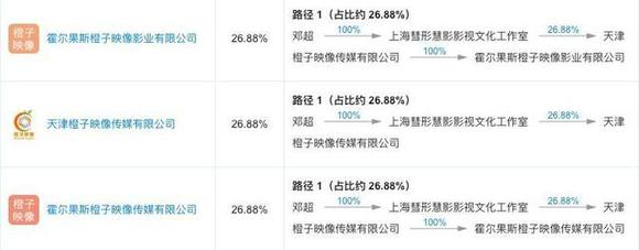 橙子映像,邓超通过全资公司上海彗形彗影影视文化工作室入局,持股26.88%任公司董事长。该公司成立于2013年,参与出品的电影有《战狼2》《乘风破浪》等,最有名的是邓超和俞白眉的“三部曲”《分手大师》《恶棍天使》以及《银河补习班》。
