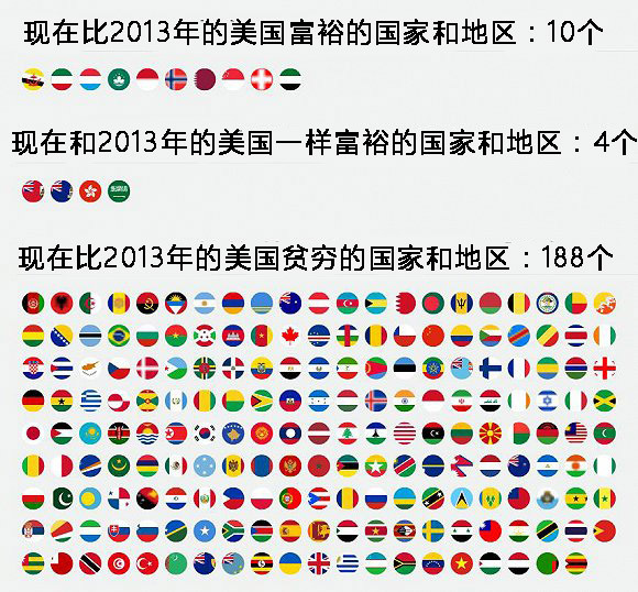 如果我们再以同样的方法比较海地和美国的话,就显得有点残忍了。海地2013年的人均GDP为1650美元。美国现存的最早的人均GDP数据为1880年的数据,那时美国的人均GDP已经为2100美元了。