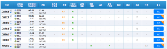 比如到今天为止,昆明到丽江,或者大理到昆明,都只能买到“D”字头的车票,前者至少要花3小时,后者至少要花2小时。