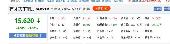 财报发布第二天,猎聘网下跌3.10%,以15.62港元收盘,总市值81.33亿港元,相比较刚上市时161亿港元总市值跌去了接近一半——公开资料显示,2018年6月29日,猎聘网登陆港交所,股票代码06100.HK,发行价33港元,开盘价31.6港元,上市当天以32.5港元收盘,以收盘价计,猎聘网的总市值为161亿港元(约合136亿人民币)。