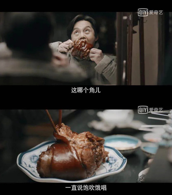 《鬓边》里的老商,不仅放下了名旦的矜持,还带头搞起了梨园吃播。这厢和程凤台下午茶吃奶油蛋糕,那厢边训班子边聚餐。硬糖君强烈怀疑,让尹正在《鬓边》甩开膀子大吃,是减肥成功的于正的代偿性满足。自己节食减肥,便看演员吃播过干瘾,于正老师,你没有心!