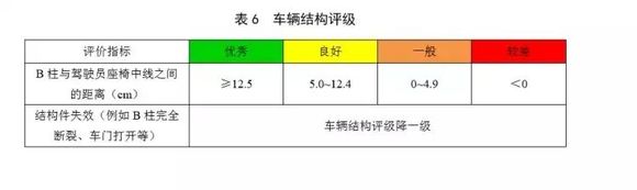 碰撞后,思域的B柱与驾驶员座椅中线之间的距离为8cm,属于良好,但是由于思域B柱断裂,降一级因此属于较差M,车辆结构的一般M为6分。
