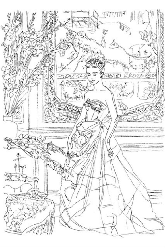 《秘密花园》主打花草鸟兽们,而Vogue版涂色书自然要将时装进行到底。这本书的灵感来自于上个世纪50年代的Vogue杂志,你绝不会在里头看到任何运动服饰,图底将以穿着套装、裙子等衣服的优雅女士为主。