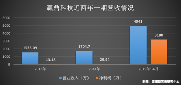 在挂牌新三板前,赢鼎科技曾于2013年7月引入过外部投资者者,当时公司估值1.5亿元。