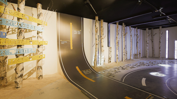 即使三年的成立时间并不长,但ONE还是将此次展览当作一个“成年礼”,你可以在展览入口的公路图样中看到ONE的发展轨迹。在获得了3000万用户、十亿阅读量以及日均200万人次的活跃总数后,这个曾经以“韩寒监制”为主打的文艺阅读类App正在试图摆脱品牌创造者的影子。