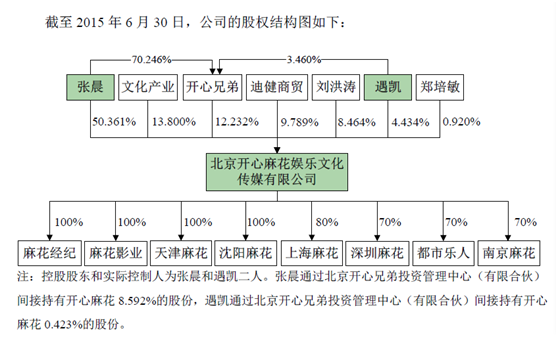 来看下股权。开心麻花的实际控制人是张晨和遇凯两人,其分别持股50.36%以及4.43%。不得不提,作为创始人的遇凯在10多年来股权一直在稀释,曾经持股数高达50%,随后在数次股权架构改变后一直在卖出股权,主动或被动的将股权比例降至4.43%。因此虽然是创始人,却并未受益于登陆新三板。股东中不得不提的是2013年进入的中国文化产业投资基金。文化产业投资基金来头不小,它是唯一一支国家级文化产业投资基金,由财政部、中银国际控股有限公司、中国国际电视总公司及深圳国际文化产业博览交易会有限公司联合发起。其于2013年以95.9万元的金额获得开心麻花15%的股权,随后一路增资至593万。假设开心麻花成功登陆新三板,保守估计市值在50亿左右,财政部可能借此获得了2000%的投资收益。(虽然短期应该不会退出。)