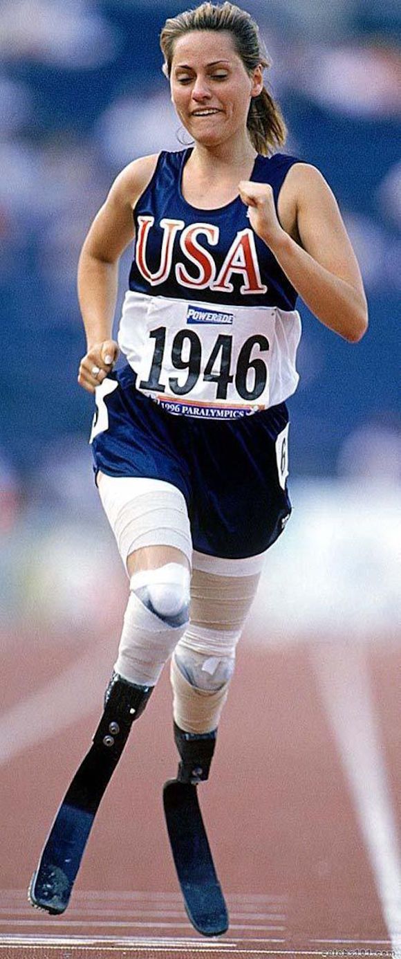 Aimee Mullins一岁就做了膝盖以下截肢手术,小小年纪就戴着义肢,和同龄的孩子一起走路,奔跑。