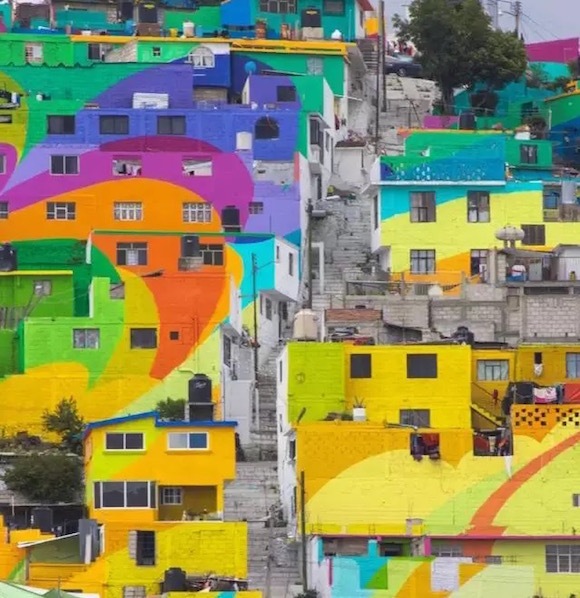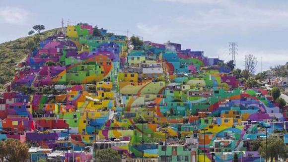 他们忽然有一天对墨西哥政府说,我们想在这里画一幅全国最大的壁画,要让整个社区变成一道彩虹。