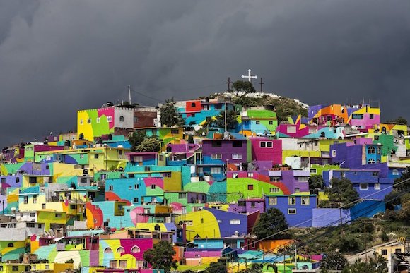 在墨西哥的Palmitas社区,一座从前的贫民窟现在在艳阳下如同彩虹般绚烂夺目。