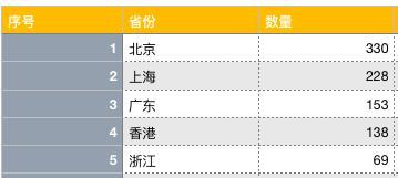 如下图所示,大部分瑞幸咖啡事件的地域集中在东部经济较为发达地区,它们一方面是瑞幸咖啡门店比较集中的地方,另一方面也集中了对资本市场比较关注的主体。我们还可以从前五名舆情热度的地域看出,除了北上广之外,香港和浙江的舆情对美国上市中概股的关注程度也是较高的。
