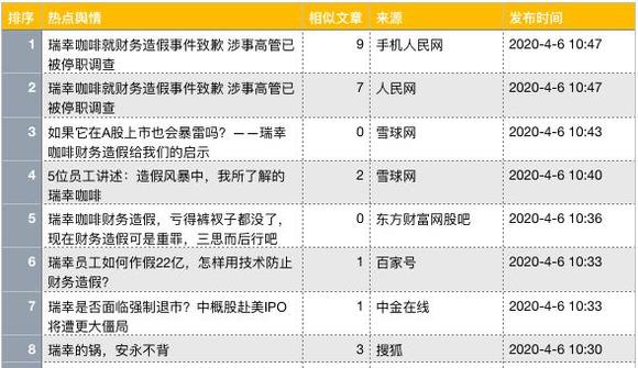 如下图所示,从最新出现的前8名敏感舆情内容来看,瑞幸咖啡造假事件导致中概股整体受质疑、中国股赴美IPO受阻,或许是此次事件带来的最大“负面性”了。