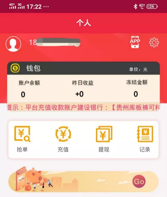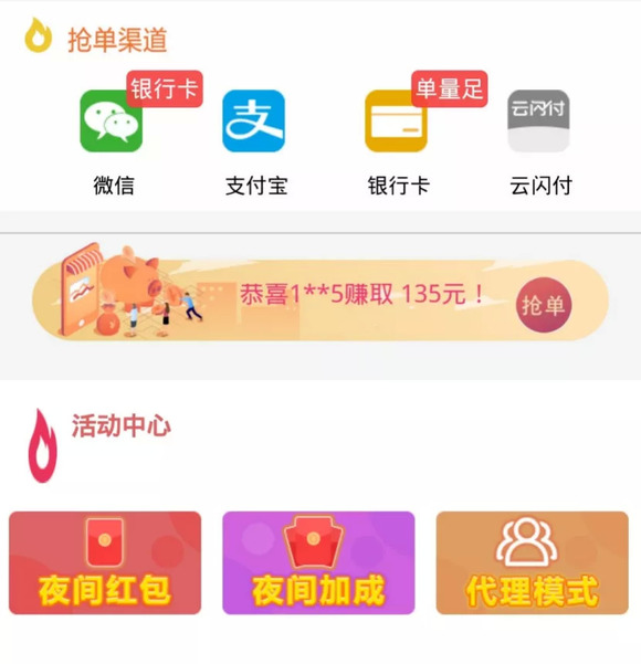 平台接到一个赌博用户往赌博网站充值1万的订单后,会马上在网站上发布订单,让二维码用户抢单。