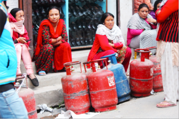加德满都的餐厅用高于平常两三倍的高价从黑市上购买燃气和油。有的饭店无法开灶,只好减少菜肴品种。一些居民则使用地震中倒塌的木头房屋残片来烧火做饭。