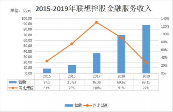 2019年联想控股录得来自金融服务业务的收入为88.15亿元,同比增长27%;而该板块为联想控股贡献的净利润却同比下降19%至20.76亿元。净利润减少是由于“战略性收缩部分公司业务规模”等因素。