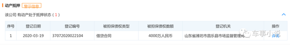 此外,2020年3月19日,山东梅拉德能源动力科技有限公司自身还通过动车抵押贷款方式从天津银行股份有限公司济南分行借贷4000万元。根据公开信息显示,抵押物包括焊装夹具线、锅炉主机、液压机、总装流水线、涂装流水线等。