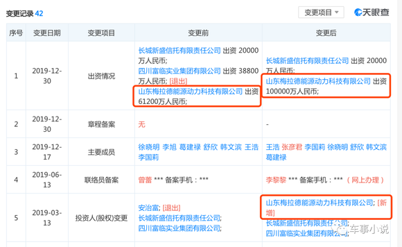 对此,车事小说通过对四川野马汽车的工商注册信息查询后发现,2019年3月13日,山东梅拉德能源动力科技有限公司出资6.12亿元新增成为了该公司股东。并在2019年12月30日,增资至10亿元,成为四川野马汽车的控股股东。