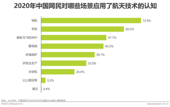 如上文所述,技术这个词对航天人和对普通人来说,是具有不同含义的两种概念。所以完全抛开航天专业性从普通用户的视角审视,他们在意的关键点在航天人眼里就会非常基础。在我们列举的所有场景中,其实所有这些日常生活中的场景,均使用了航天技术,或在某一个关键环节直接由卫星提供服务,但除了导航与手机以外,其余场景用户的感知度都没有超过50%。