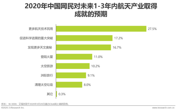 这样的预期对于航天产业来说是机遇:一方面,配合前文的调研结论,航天产业可以非常明确的找到宏伟的目标,然后实现这些目标的路径及方法,就是针对用户最大疑问而进行的最好解答;另一方面,历史上推动航天发展的主要因素是政治需求,经验证明这种动力既不持久也不稳定,而航天的普惠化,势必将发展航天的主要动力从政治转为社会愿望。而这一点在之后的调研结论中,尤其重要。