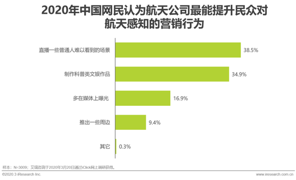 对航天产业来说,这种概念替换是一个长期的过程,38.5%的用户认为目前最能提升民众对航天感知的行为是直播火箭升空、科研过程和宇宙生活的画面。长期束之高阁后,眼见为实是打开局面的良好起始。