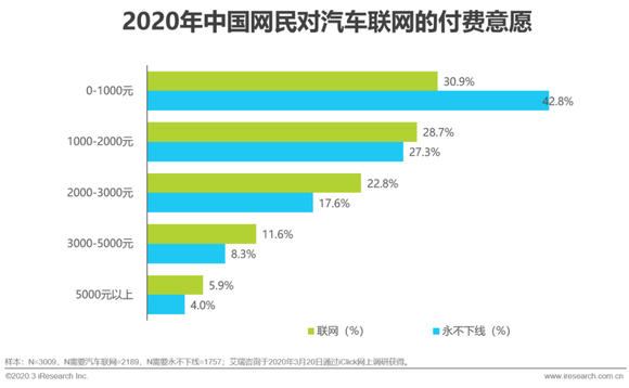 汽车联网对于用户来说,尽管可能涉及卫星,但依然与“上网”极大相关。所以用户会本能的将日常已经形成的概念和消费习惯映射到新生事物上。包月付费和20元以下包月费用的用户占比都比较高。所以当某项技术实现的功能与日常生活中的固有设施息息相关或极大雷同时,就不能以技术本位和公司运营成本本位的思考模式来定价。