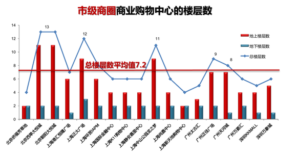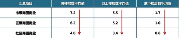 因此区级商业与社区商业的楼层数普遍要低于市级商圈商业,并呈递减趋势。