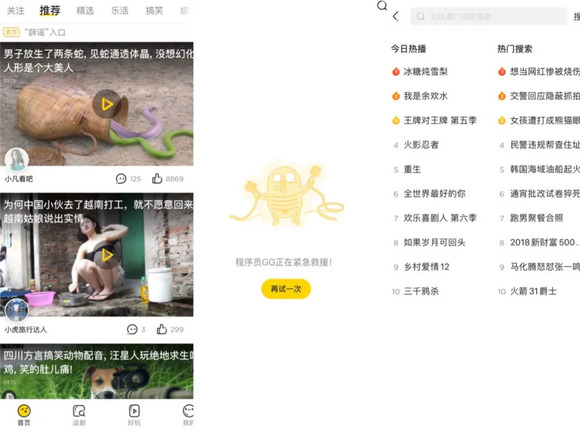 土豆视频的产品首页象征性地保留了13个频道,系统推荐频道的短视频多以低俗美女、猎奇新闻、虚假养生为主;动漫、影视、综娱等主频道的二级分类内容已无法显示;转到搜索界面,今日热播榜完整地复制了优酷的热搜榜,而土豆视频的热门搜索则多是一两年前的“旧闻”。