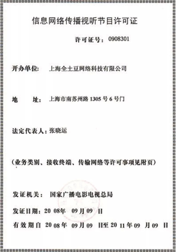 好在经过9个月的艰辛跋涉后,土豆网最终拿到了牌照。