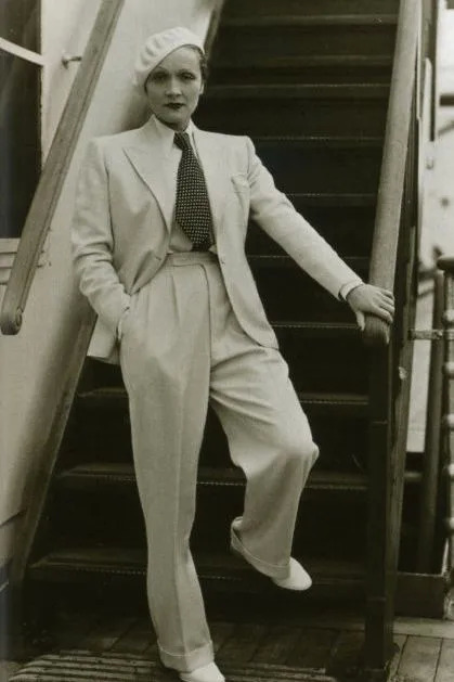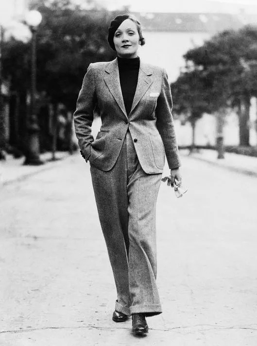 要说女士西装,就不得不提一个非常重要的人:德国女演员玛琳·黛德丽。她被认为是有史以来最伟大的女演员之一。