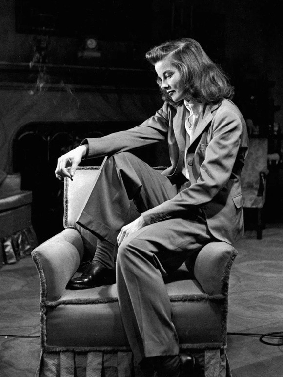 后来到了40年代,银幕巨擘凯瑟琳·赫本也加入了这场权利宣战。她对于穿西装套装上下班的强烈偏好,深深影响了当时的女性。