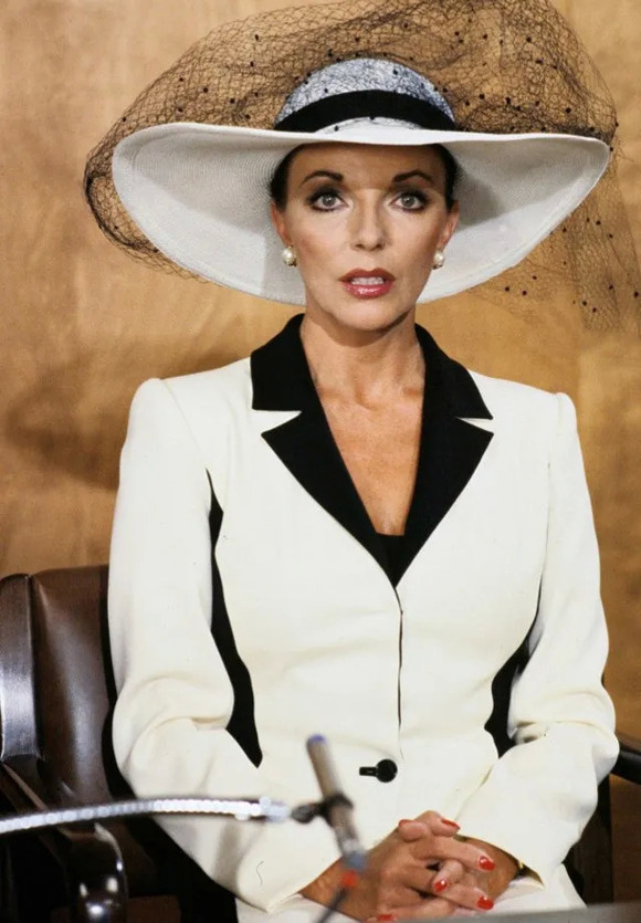 还有80年代风靡一时的肥皂剧《豪门恩怨》,Jona Collins也穿了Armani套装,黑白拼色,气场十足。