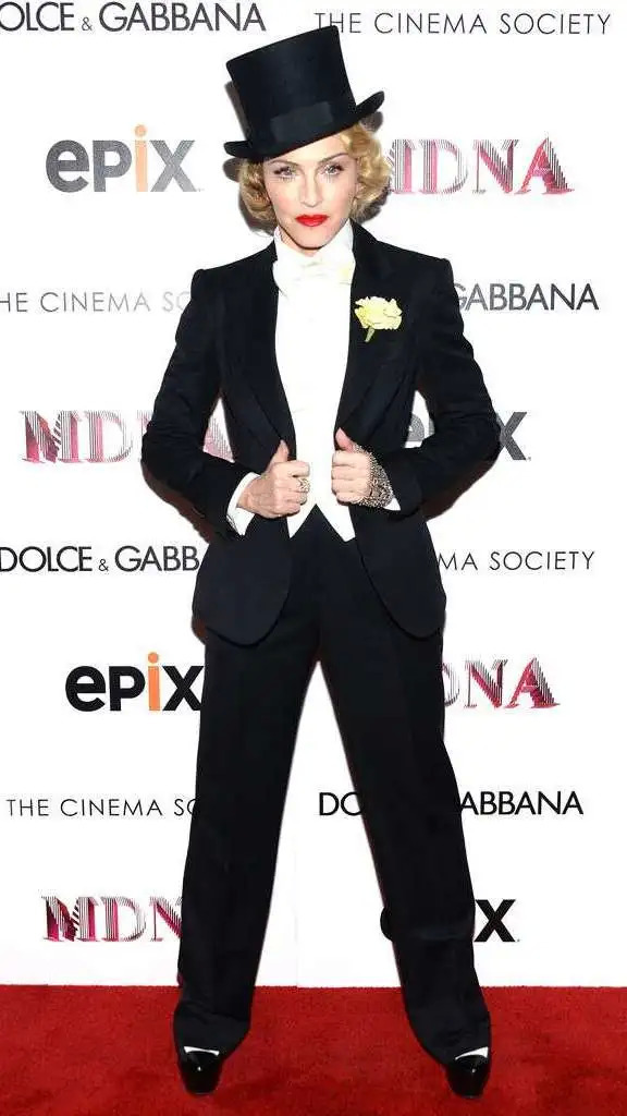 更不用说向来走在时尚前端的麦当娜,90年代她就用套装闯出一片天下,直到现在她都依旧是最佳西装套装的人选之一。